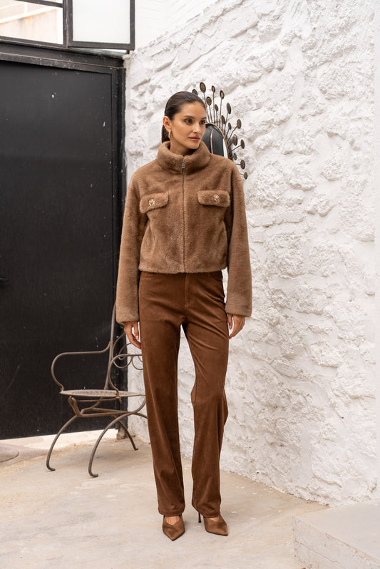 Avenelle Cropped Faux Fur Jacket