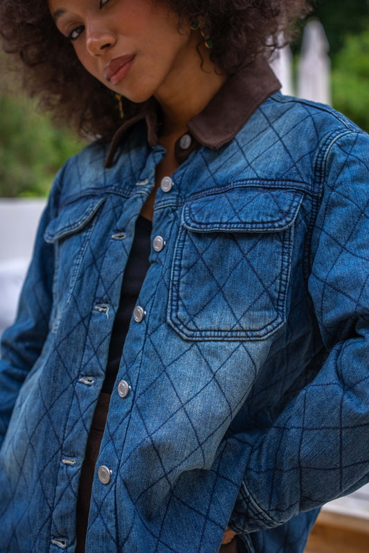 Diamond Quilted Denim Shirt Jacket