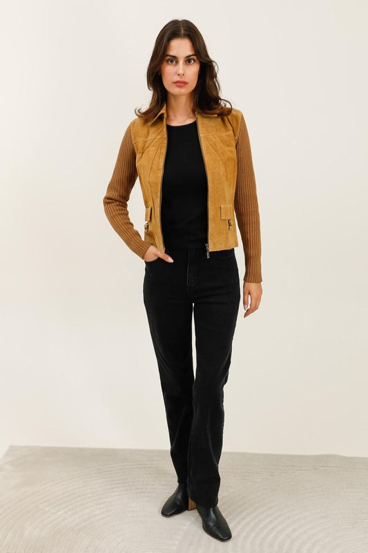 Solange Ribbed Knit & Suede Jacket